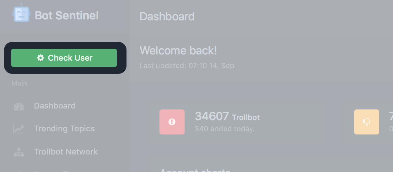 Bot Sentinel’s a really powerful set of tools, we’re mainly interested in that green “check user” button - like with the others you pop in the suspect @username and it’ll spit out a nice easy to read score assessing the account’s trollworthyness. Like with BotOrNot higher scores are worse, lower are better but (unlike BotOrNot) Bot Sentinel’s results are friendly and easy to read… once you know where to click!