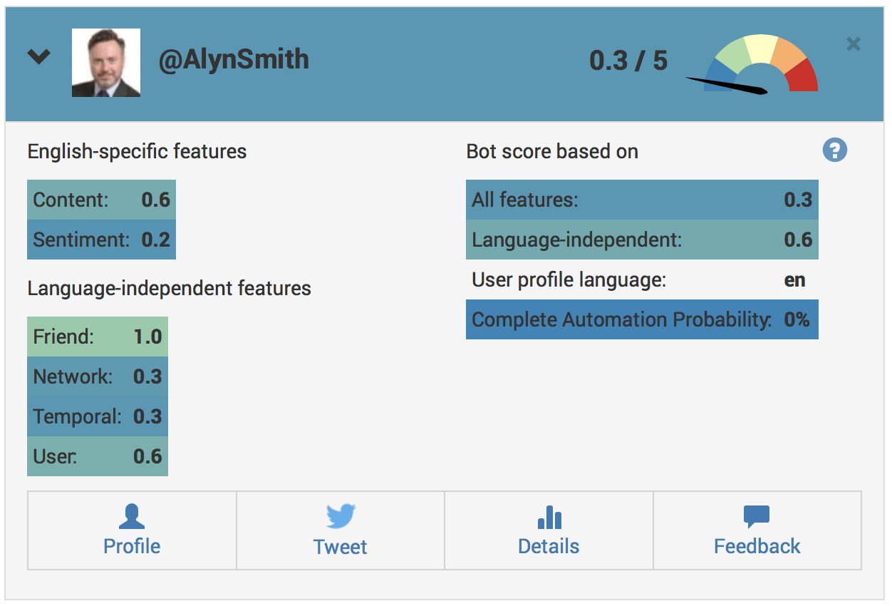 If the account you’re checking scores higher than 2, we suggest check again using the next tool. For scores over 4, the likelihood is you’ve found a bot.